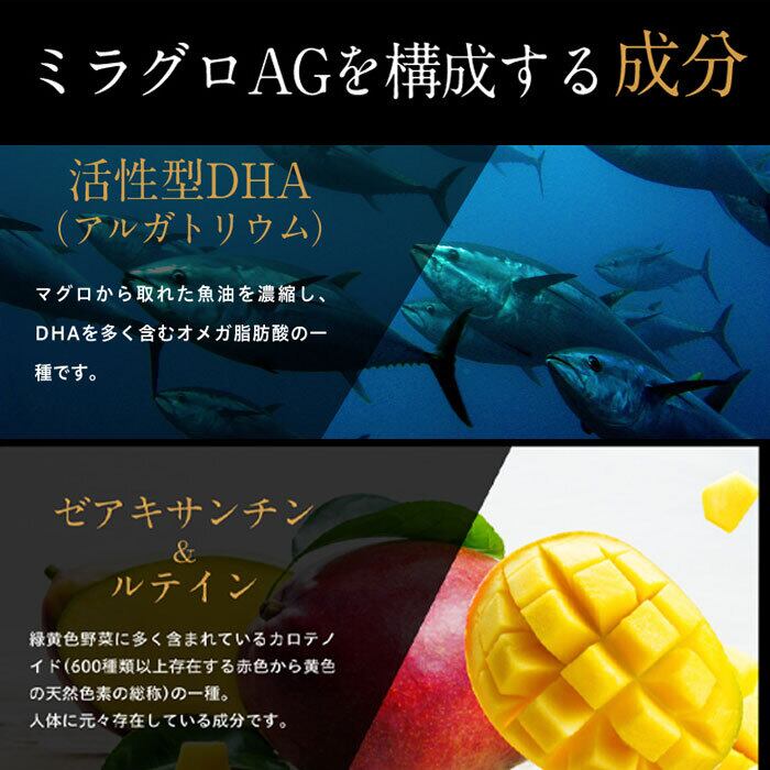 商品名 / 内容量 ミラグロAG (MilagroG) サプリ / 90粒 (約30日分)[名称:精製魚油含有加工食品]